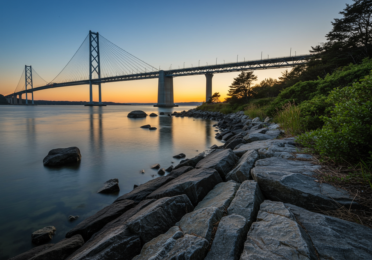Taylor Point. Developed in 1988, it’s a 25-acre overlook with a unique combo of freshwater wetlands, beach, black cherry woodlands, and cliffs. Taylor Point offers a view of the Pell Bridge and is along Bay View Drive. People visit this area to picnic, swim, fish, and clam. Also at Taylor Point is Potter’s Cove, the perfect place for people to boat and anchor.
